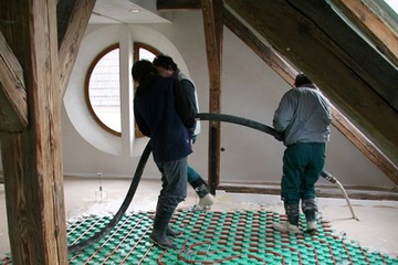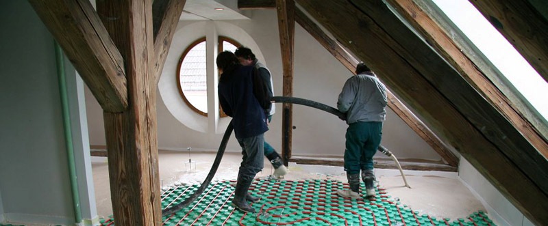 Vysoká hutnost a dokonalé zalití topných rozvodů minimalizují odpor při prostupu tepla, a tím urychlují prohřátí vytápěného prostoru budovy. Díky tomu, že při pokládce se pracovníci nemusí pohybovat po kolenou, nehrozí poškození topných rozvodů či izolační vrstvy.